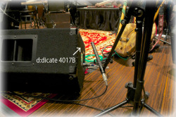 実は一番音が良いと感じたのが、d:factⅡ(ボーカルマイク)です。今回はパーカッショニストのラティールのセンターイメージを録るために、パーカッションの正面から楽器と口の間辺りの高さで1m位離して狙うのにd:factoを使用しました。声の大きいラティールの歌もパーカッションも、どちらもしっかりと好い感じに録れていてびっくりしました。PAだけでなく録音にも使える素晴らしいマイクですね。