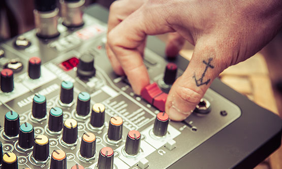 • ギターを直接ミキサーに接続可能なギター用ハイインピーダンススイッチをマイク/ライン入力(M1/M2)に搭載。