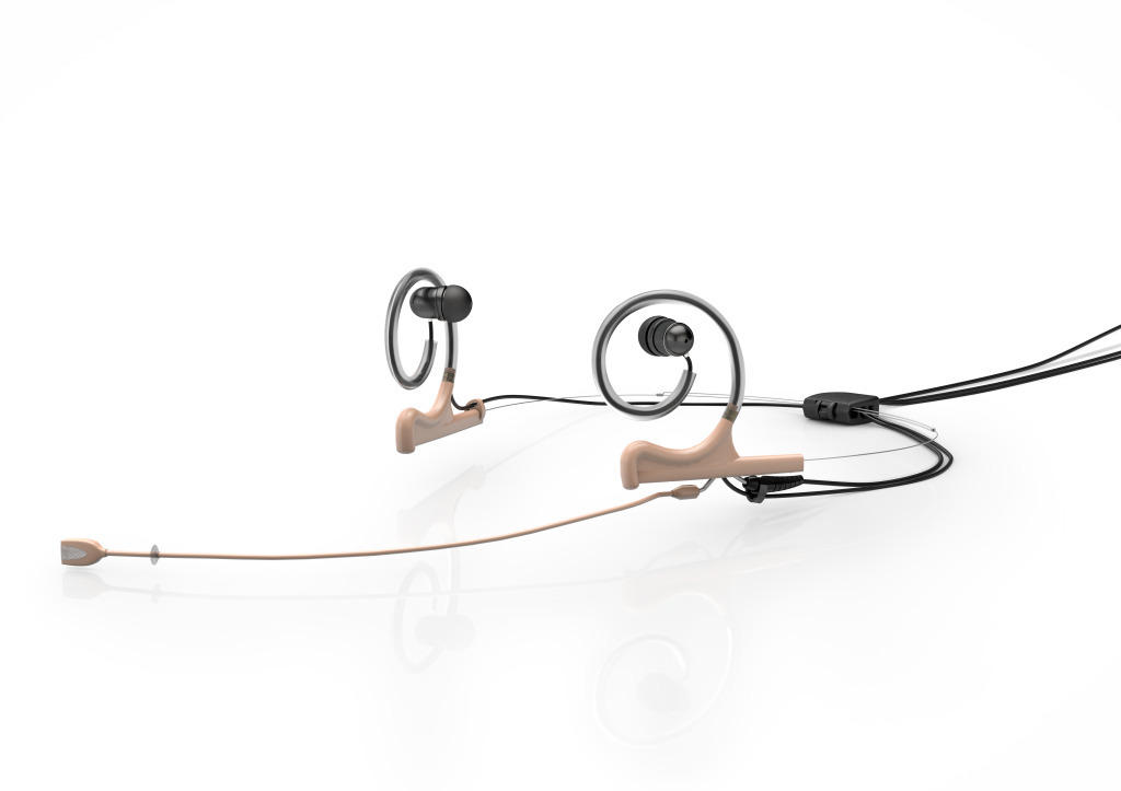 イヤーモニター部はヘッドセット本体と完全に一体化しています。ヘッドセット・マイクを装着するとイヤーモニター部は自然と耳の適切な位置に配置されるため、迷うことなくスムーズに装着することができます。またイヤーモニター・ケーブルは、マイク・ケーブルと一緒にクリップでまとめられているため、ケーブルの取り回しにもたつくことはありません。これまでマイクロホンとイヤーモニターを別々に作業していた手間が軽減され、慌ただしい現場でもスムーズかつ確実に装着することができます。