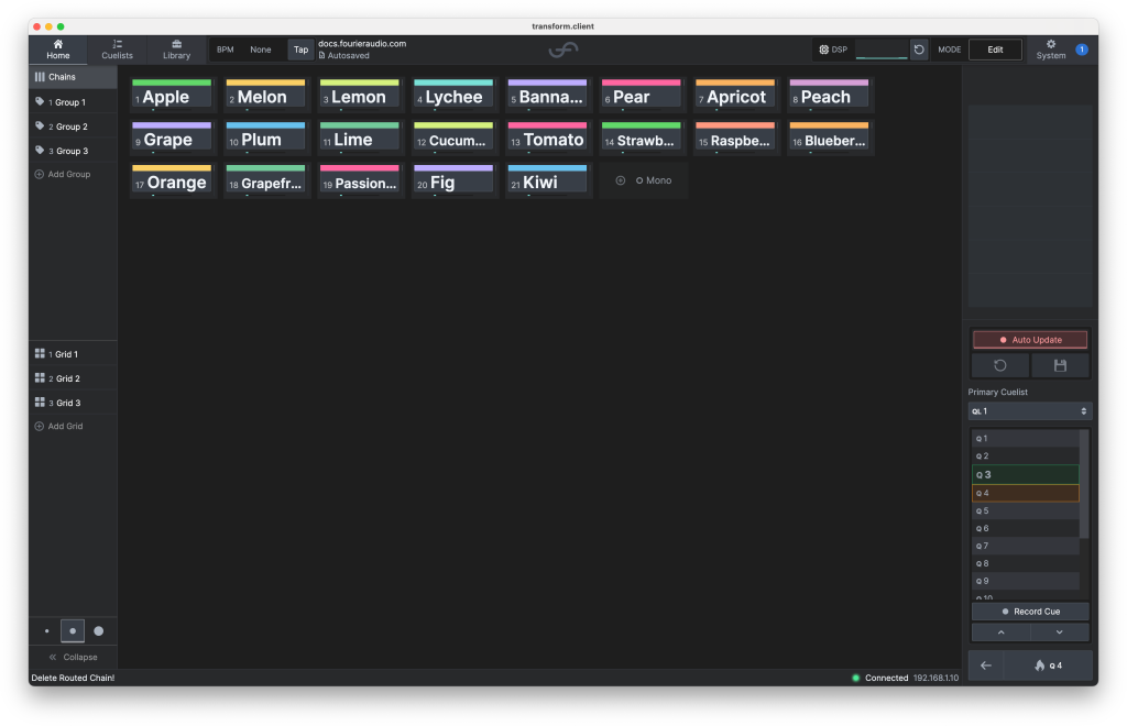 表示されるチェインをフィルタリングして、指定のグループに属するチェインだけを表示することができます。詳しくは Chain Groups をご覧ください。
