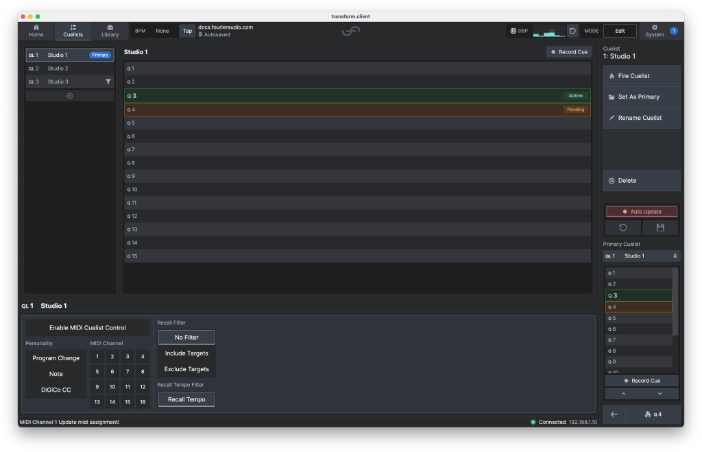 左側のペインでCuelistを選択すると、そのCuelistに含まれるすべてのCueが表示されます。