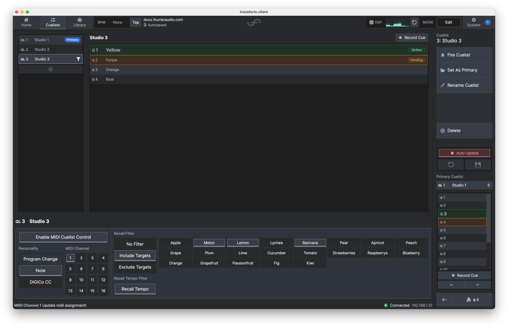 - Include Targets: Cueが起動されたとき、選択された Chain にのみCuelist が適用されます。