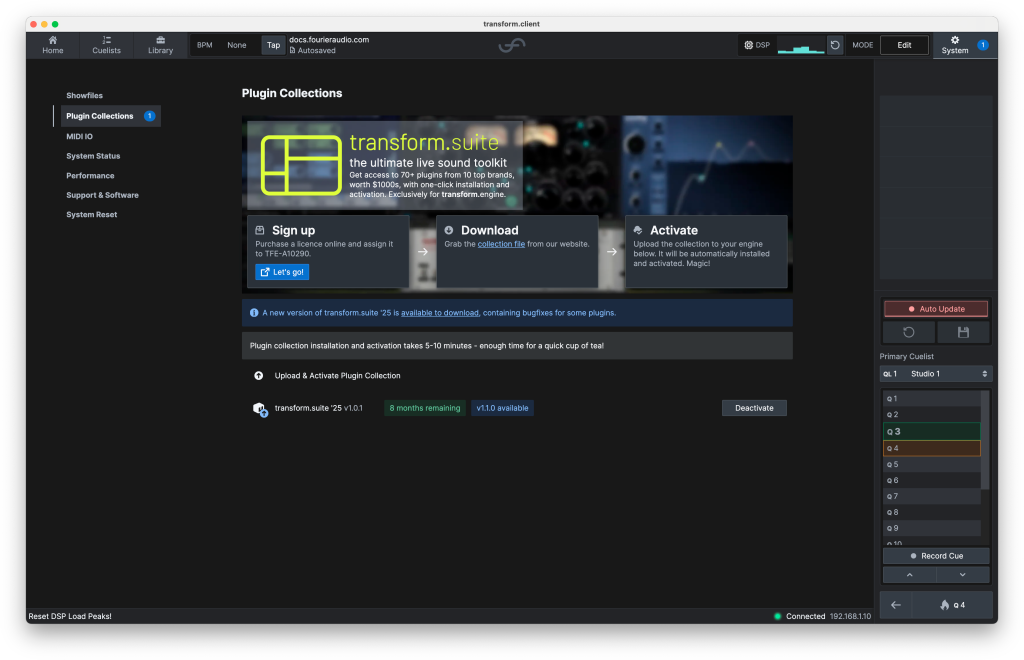 | 開始する前に、v1.3以降のソフトウェアを実行していることを確認してください(clientとengine firmwareの両方)。最新版は こちら からダウンロードできます。 |