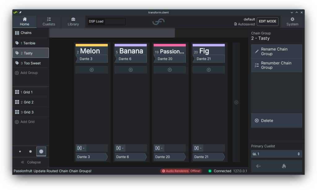 Chain Groupを作成するには、ホーム・タブで画面左側のビュー・コントロール・メニューにある