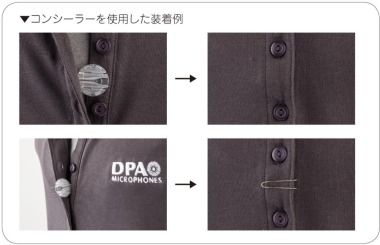 またd:screet ™ Slim の活躍の幅をさらに広げる別売のコンシーラーも用意しています。コンシーラーのトップとベースが分離可能な構造のため、衣服に取り付けたままトップだけを取り外すことができます。またコンシーラーは付属の両面テープを使用して衣服や身体に固定するほか、衣服に装着するための専用金具を用意しています。トップには衣服とのスペースを確保することで擦れによるノイズを防ぐスペースブラケット、ベースには容易に衣服に固定できるクリップを使用することで、繰り返し使用することができます。