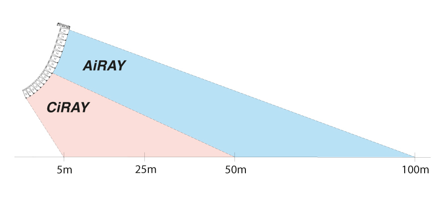 CiRAYは、既存のAiRAYとViRAYの間に位置する3-Wayフルレンジ・ラインアレイ・スピーカーシステムです。DDPドライバー、DAC、Instafit Magnetic Couplerなど、これまでのCODA AUDIOの革命的な技術を投入。デュアル10インチのコンパクトな筐体にもかかわらず、高出力でクリアなサウンドを提供。低周波数帯域のラインアレイ長さあたりのパワー密度がデュアル12インチのフラッグシップモデルAiRAYと同じという優れた音響性能を備え、固定設備からツアーまでの幅広い用途で運用可能です。