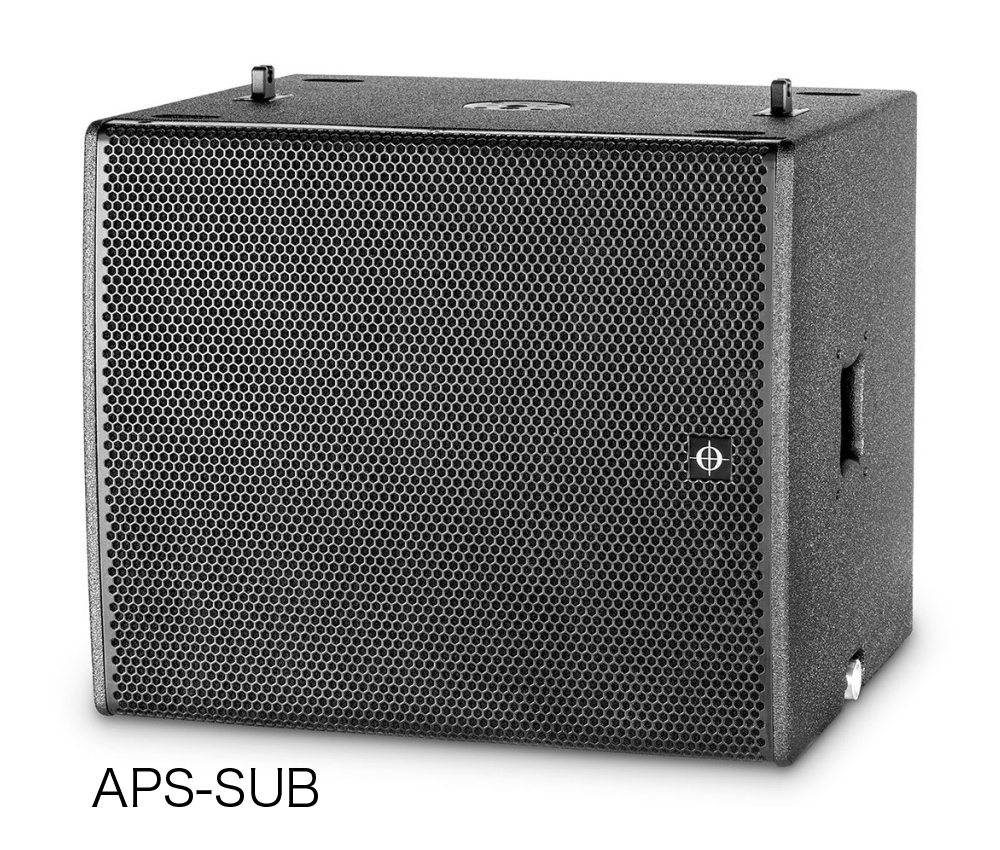 APS-Proのフライング用の金具やアクセサリーは、既存のAPSと共通です。専用サブウーファー「APS-SUB」も共通で、低域を28Hzまで拡張し低域に厚みをもたらします。APS-SUBとAPS-Proは同じ横幅なので、フライングやグラウンド・スタッキングも美しく構成できます。
