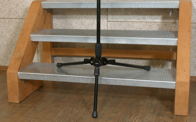 エアサスペンションを搭載し、貴重なマイクロホンや照明機材を突発的なアクシデントから保護。抜群の安定性を誇るロングストレートスタンド